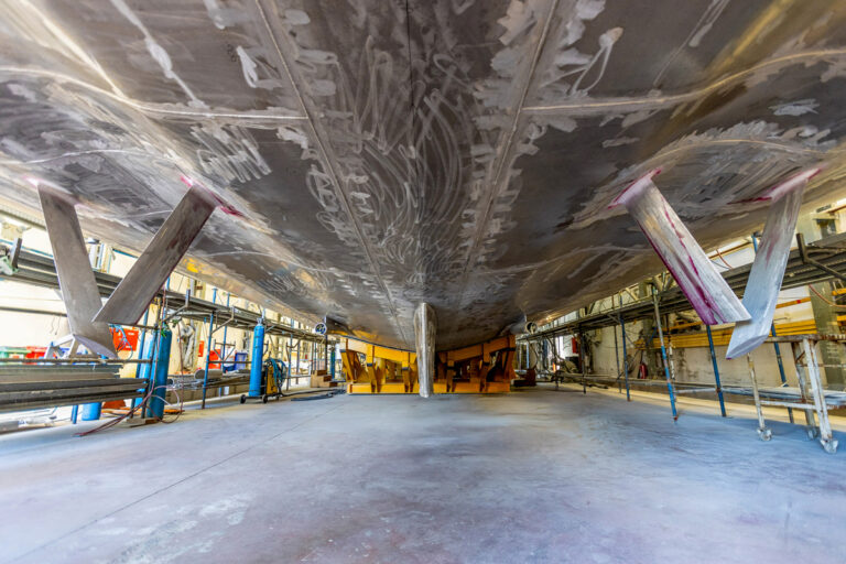Il cantiere turco Ses Yachts sta terminando la costruzione del Gx42, superyacht di 42 metri che introduce alcune delle soluzioni tecniche più avanzate oggi sul mercato. Completati lo scafo e la sovrastruttura in alluminio, l’imbarcazione è ora in fase di outfitting: l’isolamento termico e i principali impianti di piping, ovvero l’insieme degli impianti di tubazioni a bordo di una nave, sono stati installati per l’80%, mentre l’impianto elettrico è al 25% e la pitturazione al 50%.