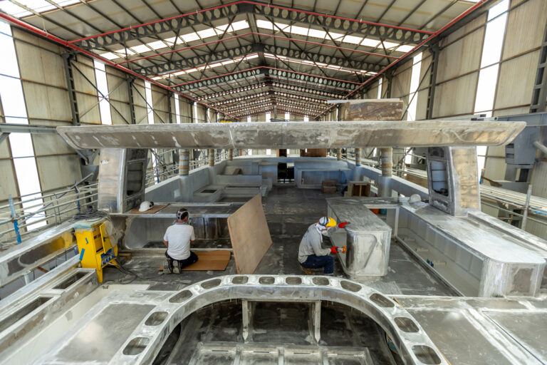 Completata la struttura in alluminio, l’innovativo Gx42 entra nella fase di allestimento con un sistema di propulsione ibrida diesel-elettrico e solare
