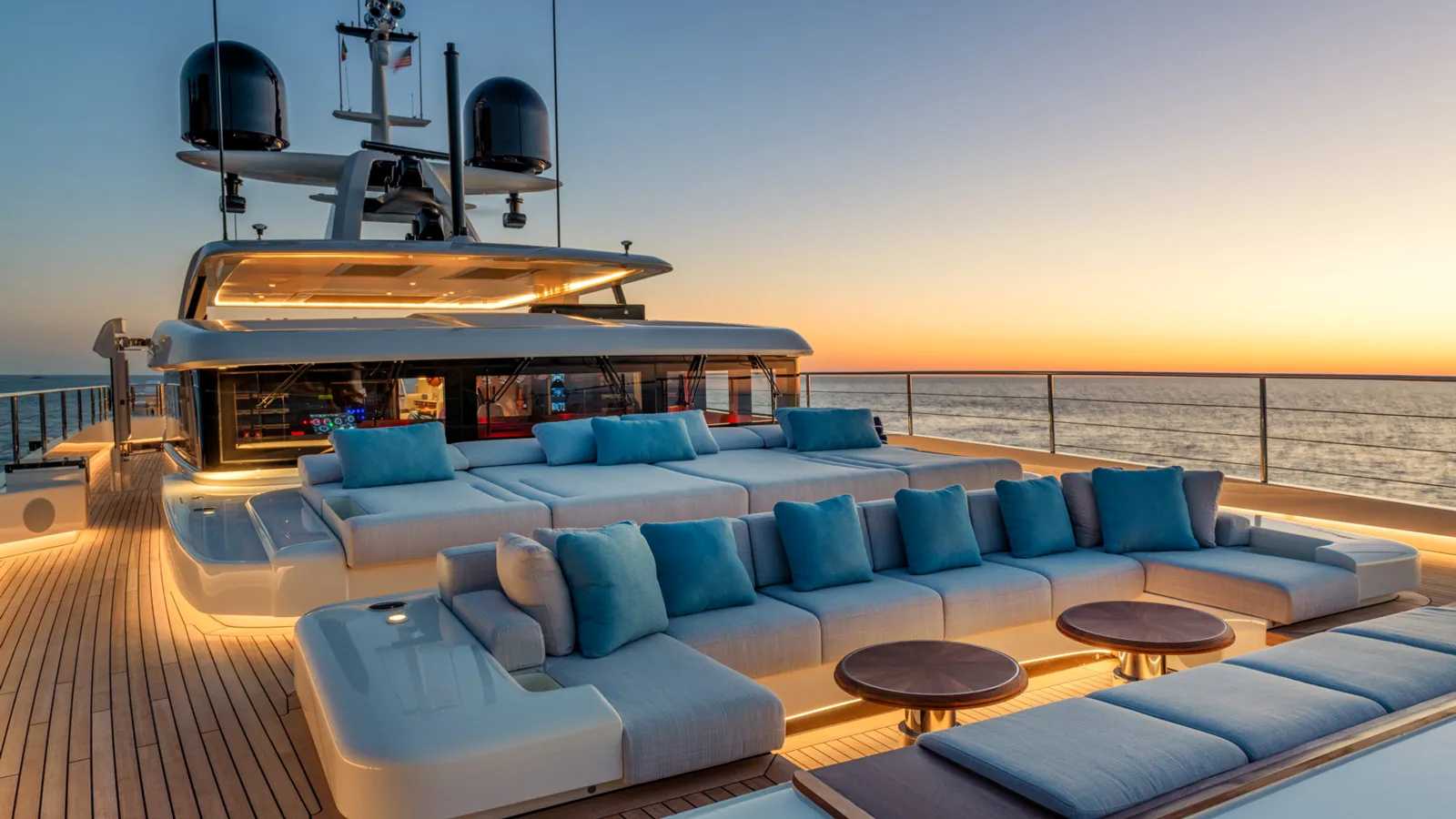 All’esterno del superyacht spiccano un beach club a filo d’acqua ideale per il relax e una vasca idromassaggio sul ponte con vista panoramica, perfetta per momenti di distensione. Lo yacht dispone inoltre di una palestra ben attrezzata per gli allenamenti.