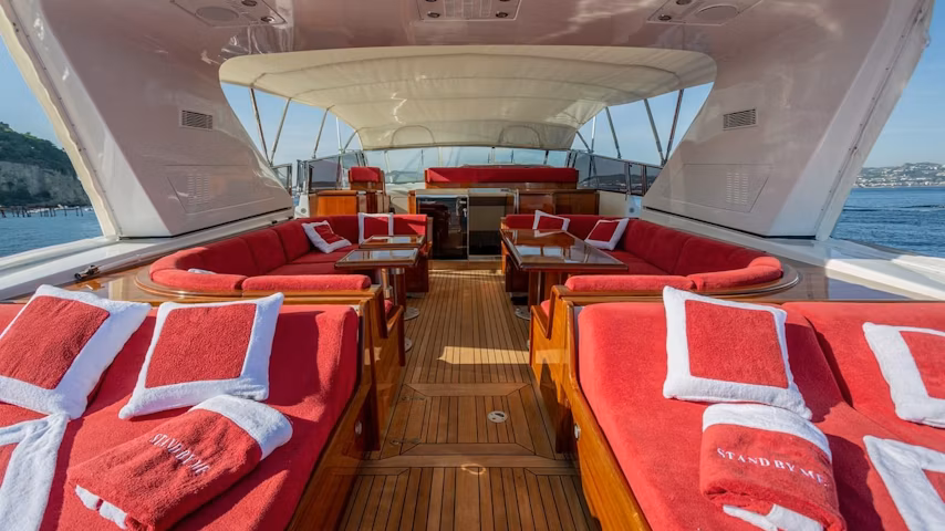 Conosciuto in precedenza come “The Mephisto”, Stand by me è stato progettato da Andrea Bacigalupo, che ha curato sia l’architettura navale sia il design esterno, conferendo all’imbarcazione il profilo riconoscibile e votato alla velocità.