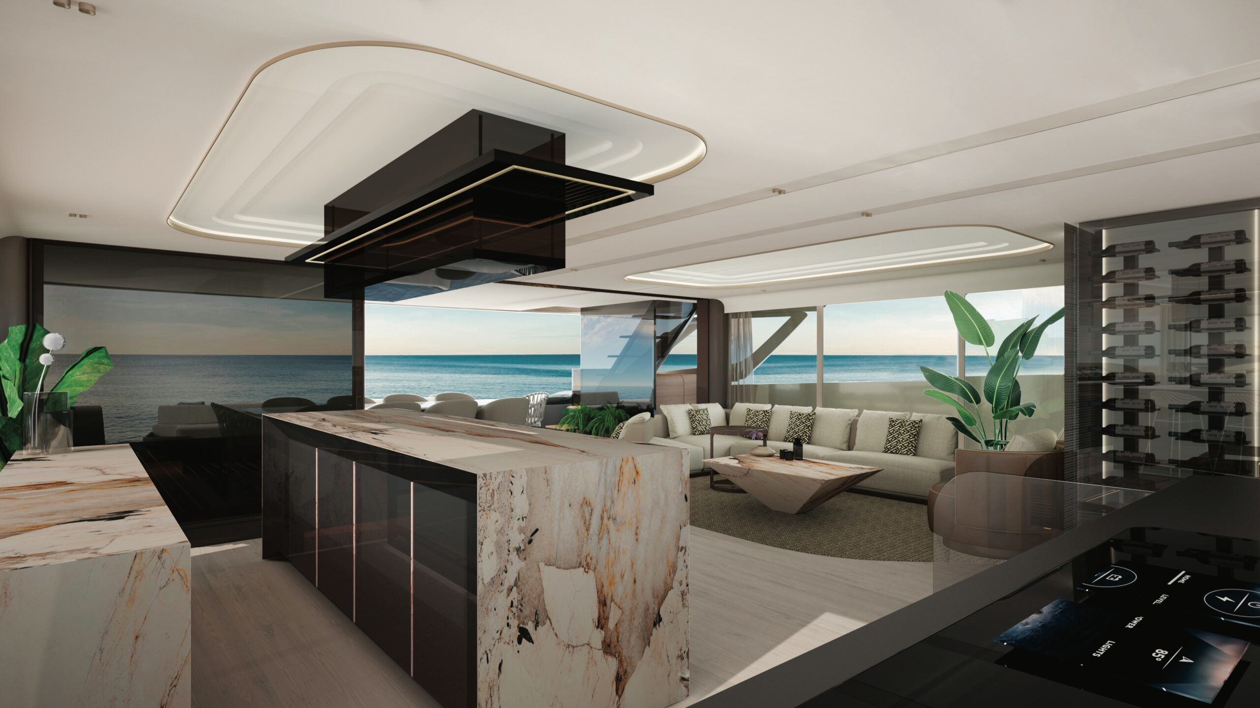 Il D100 nasce con un approccio modulare: è possibile scegliere tra motori termici Volvo IPS o linea d’asse, oppure optare per versioni ibride ed elettriche. A supporto è installata una superficie di 66 metri quadri di pannelli solari bifacciali, capaci di produrre fino a 15 kWp. L’imbarcazione integra inoltre batterie a semi-stato solido, tecnologia di ultima generazione che aumenta capacità ed efficienza rispetto alle soluzioni tradizionali.