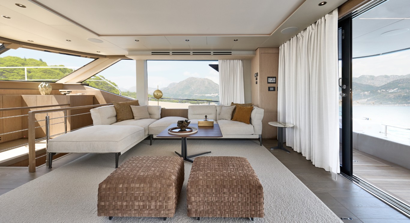 Porto Piccolo (Trieste) – Leggermente più piccolo dell’ammiraglia di gamma, da cui ha ereditato alcuni punti di forza, ma con ambienti che sembrano più grandi e una serie di migliorie tecniche. Con il nuovo M7, Prestige amplia la gamma M-Line confermando la volontà di esplorare le potenzialità del multiscafo a motore. Lungo 17,84 metri e con un baglio massimo di 7,56 metri, l’M7 si colloca tra il M48 e l’M8. È progettato per offrire una navigazione stabile, confortevole e a basso consumo. “Con l’M7 abbiamo cercato di rendere la barca – spiega a SUPER YACHT 24 Camillo Garroni, che ha curato il design di interni ed esterni – un luogo dove ci si sente subito a proprio agio, senza timore di usarla o di rovinarla. Il cockpit ribassato verso il beach club crea un rapporto più diretto con il mare, mentre la scala per il flybridge è nascosta e accessibile sia dall’interno che dall’esterno, per non interrompere la continuità degli spazi. Ogni scelta progettuale è stata pensata per unire sicurezza, funzionalità e un’idea di lusso discreto, senza eccessi”.