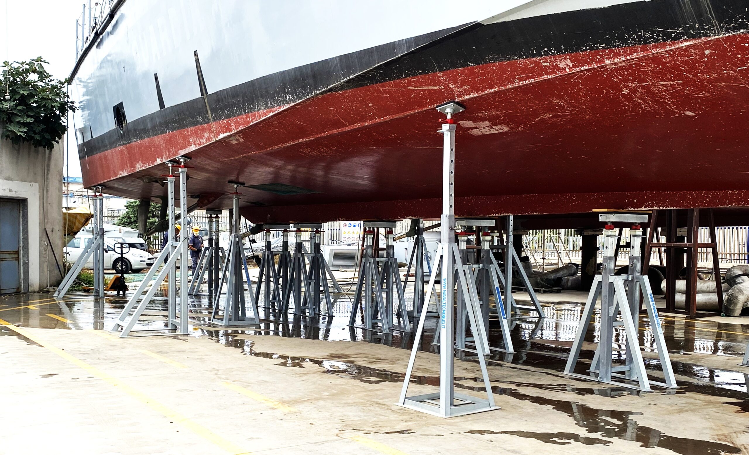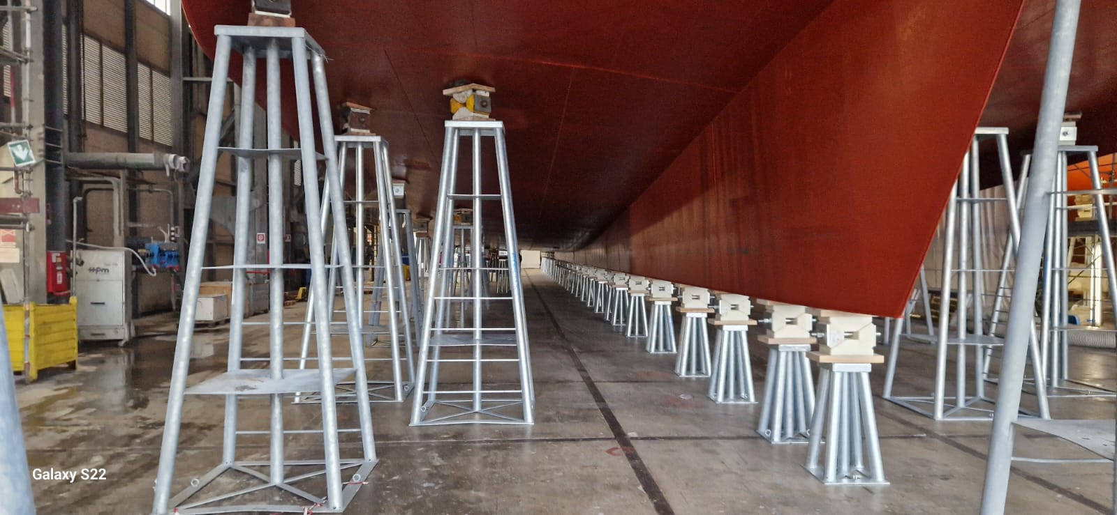 Per il supporto della chiglia Navaltecnosud propone invece il Taf, un tacco fisso costruito per garantire massima stabilità. È disponibile in più versioni con differenti capacità di carico, per coprire l’intera gamma di barche a motore, dalle piccole unità ai mega yacht. In alternativa, il Tar2T, tacco regolabile con doppio telescopio, consente una regolazione dinamica del sostegno, ideale durante lunghi lavori in carena come trattamenti antiosmosi o verniciature, quando è necessario spostare facilmente il punto d’appoggio.