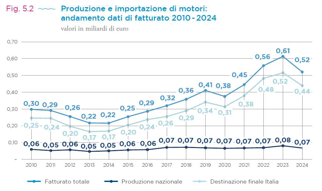Il settore si distingue per essere l’unico nell’industria nautica con una netta dipendenza dall’estero, con l’87% del fatturato totale (521 milioni di euro) proveniente dalle importazioni