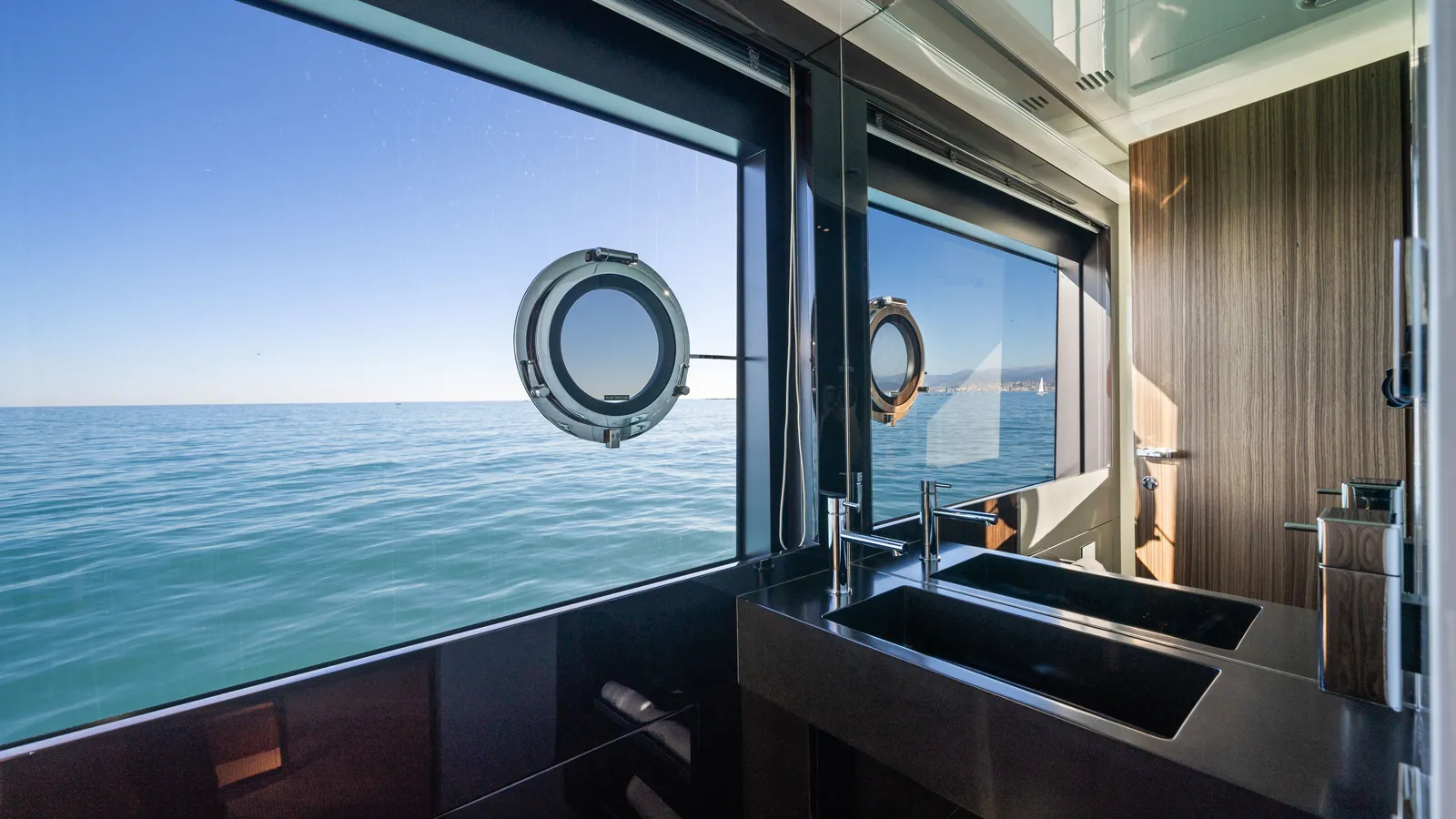 La stazza lorda di 175 del superyacht ha un considerevole valore superiore alla media degli yacht della fascia 24-30 metri; una spaziosità interna che viene valorizzata da ampie vetrate capaci di inondare gli ambienti di luce naturale e di offrire viste panoramiche sul mare.