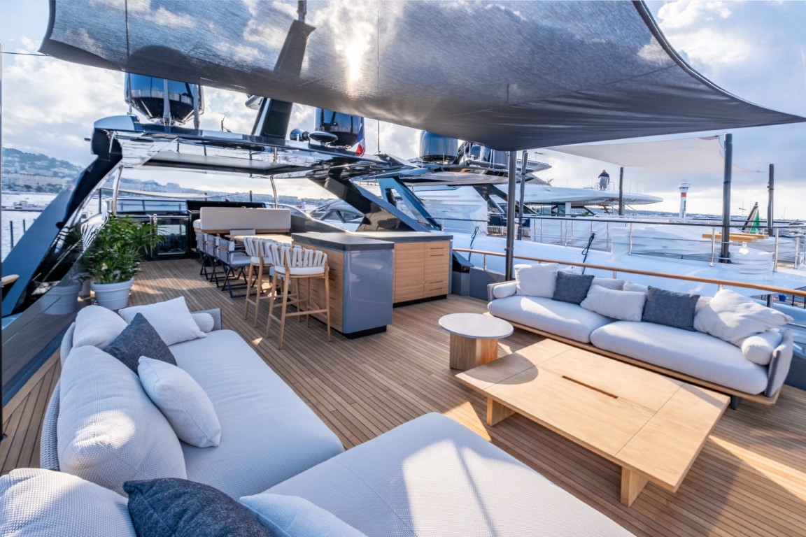 “Per me il comfort è fondamentale, ma deve essere discreto, elegante. Non possono mancare ampie zone lounge all’aperto, zone d’ombra ben studiate, divani comodi che ti fanno davvero venire voglia di vivere la barca a tutte le ore. Ovviamente grande attenzione anche alla tecnologia, che deve semplificare, non complicare. E poi gli spazi devono essere fluidi, funzionali, belli”.