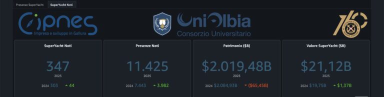 Sono i risultati che emergono dal secondo studio sulle presenze dei superyacht in Gallura, elaborato dal Cipnes Gallura attraverso il proprio Centro Studi, in collaborazione con UniOlbia e con la Direzione Marittima del Nord Sardegna, e presentato a Milano negli spazi Insula – hub di promozione dell’agrifood della Sardegna – venerdì 12 dicembre, davanti a un pubblico di investitori nazionali e internazionali. L’analisi fa parte della convenzione firmata dal Cipnes con l’assessorato alla Programmazione della Regione Sardegna, il Centro Regionale di Programmazione e l’assessorato all’Industria della Regione Sardegna per l’internazionalizzazione dell’industria nautica sarda.