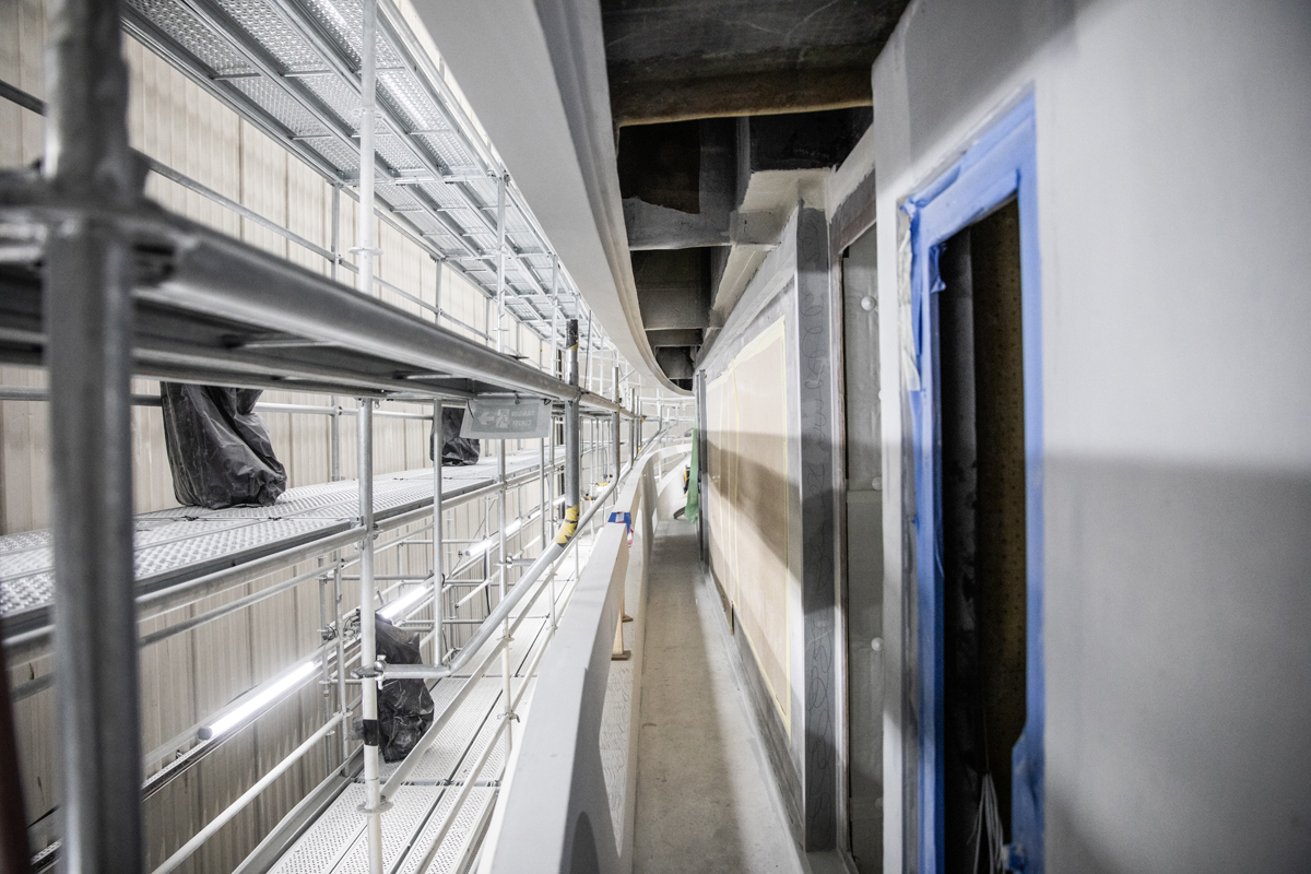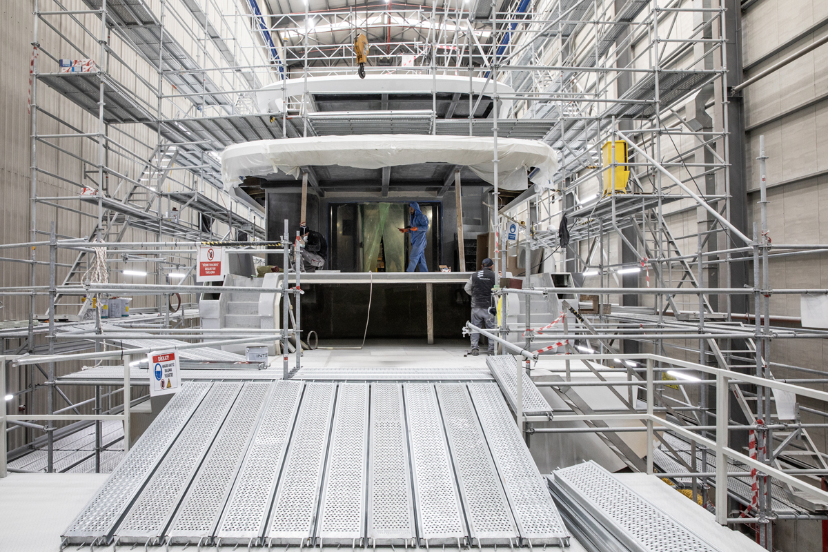 Nelle aree esterne, sono già state installate le porte scorrevoli, mentre prosegue la produzione del ponte in teak e avanzano le lavorazioni preparatorie alla verniciatura, in vista dell’applicazione finale. Questi step si inseriscono in una tabella di marcia che comprende, nelle fasi successive, l’installazione dei motori, il completamento dei cicli di verniciatura, la posa delle boiserie interne, il varo, le prove in mare e la consegna finale. Con una stazza inferiore alle 300 GT, il Sirena 118 è stato progettato per offrire un equilibrio tra volumi generosi e gestione semplificata. Il layout si sviluppa su tre ponti ed è pensato per essere altamente flessibile. La suite armatoriale è collocata sul ponte principale, soluzione che consente un elevato livello di privacy e un accesso diretto alle principali aree di vita diurna. Tra le configurazioni opzionali spicca quella definita “loft” su due livelli, concepita come un’area privata affacciata sull’acqua e collegata da una scala a chiocciola dedicata. La sistemazione degli ospiti può arrivare fino a sei cabine, includendo una Vip di dimensioni importanti, una scelta che rende l’unità adatta a crociere prolungate con un numero elevato di ospiti, mantenendo standard di comfort e separazione degli spazi.