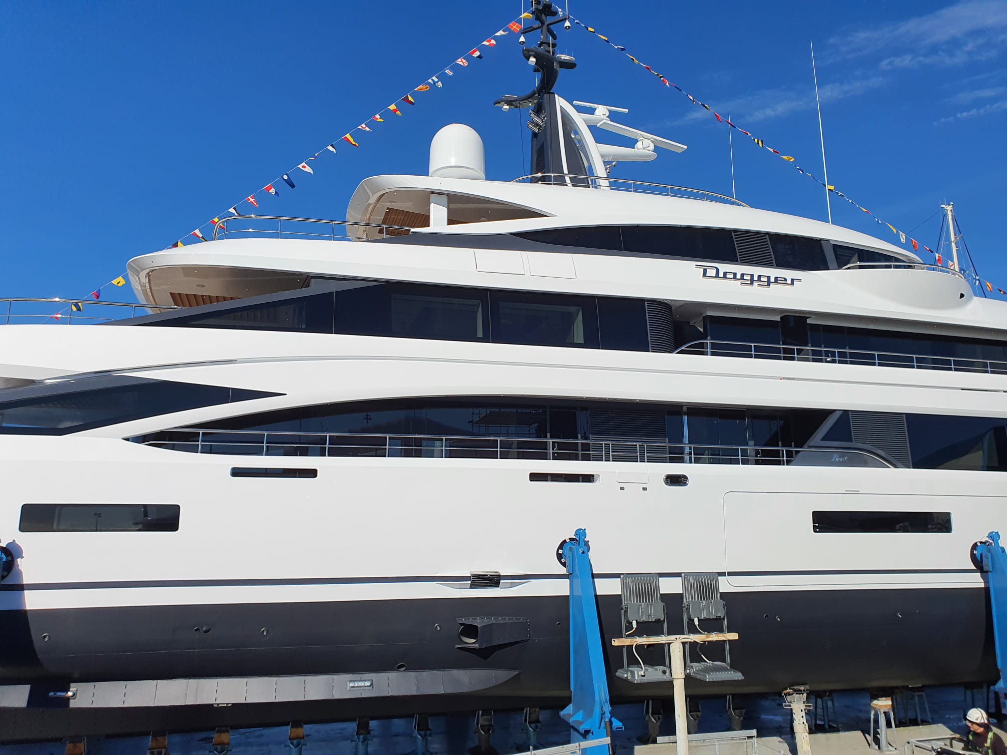 M/Y Dagger sarà pronta per la consegna definitiva tra fine giugno e luglio 2026. La consegna precederà di poche settimane la gemella Symmetry, presente in cantiere e caratterizzata da interni firmati Raymond Langton, il cui varo è avvenuto quindici giorni fa.
