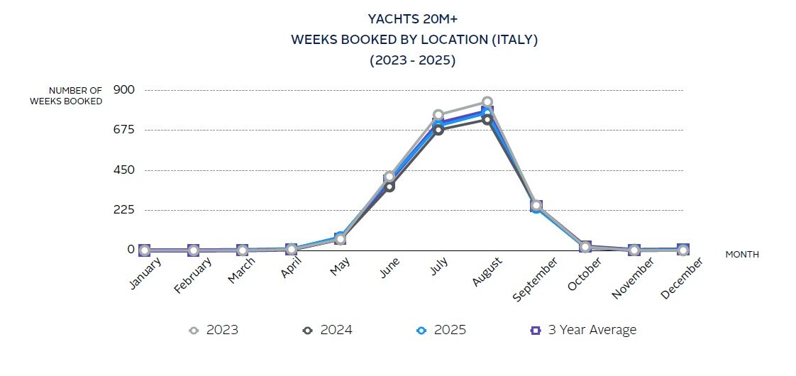 Il charter italiano tiene, e nel 2025 segna anche un rimbalzo: +4% di yacht prenotati rispetto al 2023, dopo il lieve calo del 2024. È quanto emerge dal Charter market report realizzato da Iyc, The International yacht company, che fotografa gli ultimi tre anni di attività per yacht oltre i 20 metri. In Italia a dominare è il segmento 20-40 metri, che assorbe circa i due terzi delle prenotazioni totali; i segmenti 40-50 e 50-60 metri si mantengono stabili. La stagione si gioca quasi tutta tra luglio e agosto, la durata media del noleggio resta attorno agli 8 giorni e la media di settimane per yacht ha raggiunto 4,5 nel 2025.